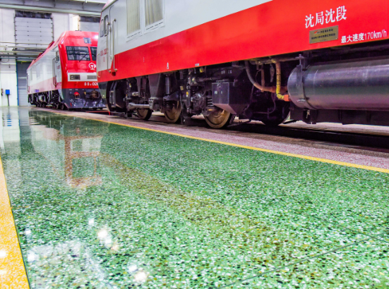 格爾木機務段新建年檢修庫在做高強升級水磨石定制前,貴段領導在進行多方面比較后,對原有設計方案進行變更為機輛高強升級水磨石地坪。貴段